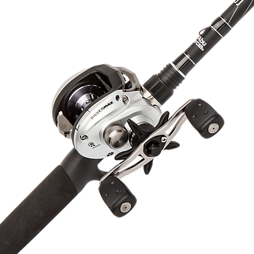 The latest generation of the Silver Max baitcast fishing combos incorporates updated styling with advanced ergonomics. Notable advancements in the baitcast reel include a new Rocket clutch mechanism that gives anglers the ability to engage/disengage the spool with one hand. This feature eliminates the need for anglers to turn the handle for engagement and is perfect for pitching, flipping or back trolling techniques. A graphite frame and body, along with the compact bent handle and drag star, provide a more ergonomic feel for all-day fishing sessions.