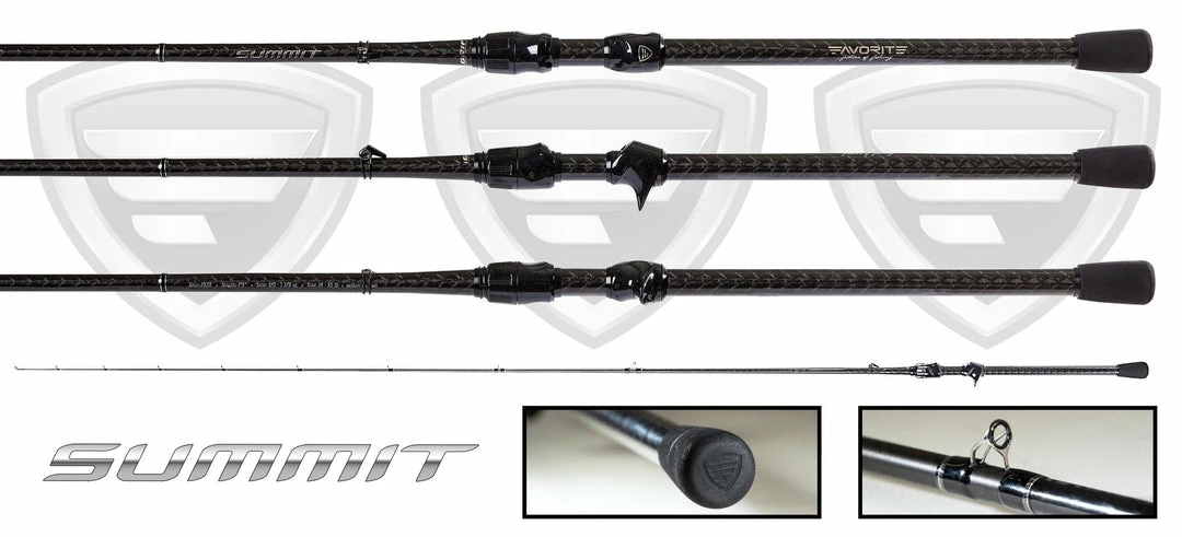 Summit is the star of the show because it is the first of its kind! The Summit is the most advanced, surgical fishing rod ever available in the U.S. market. This is the first rod to be constructed in one solid piece: no handle, no rod seat – it’s all one! The Summit also holds the record for Lightest weight in the Spinning and Casting business due to our new Graphite and Kevlar cloth technology.