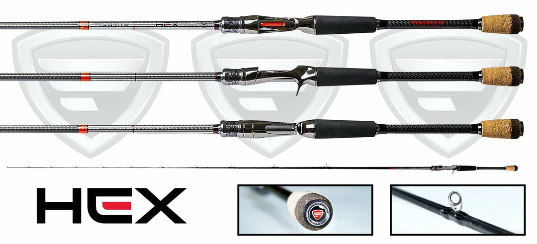 The New HEX is a very light and very strong Pro series class with offerings in both Spinning and Casting models. The name defines the craftsmanship with a patented Hexagon blank featuring custom Kigan titanium guides with comfortable G-KOREA reel seat. We have listened to our customers and invite you to truly experience the future of fishing.