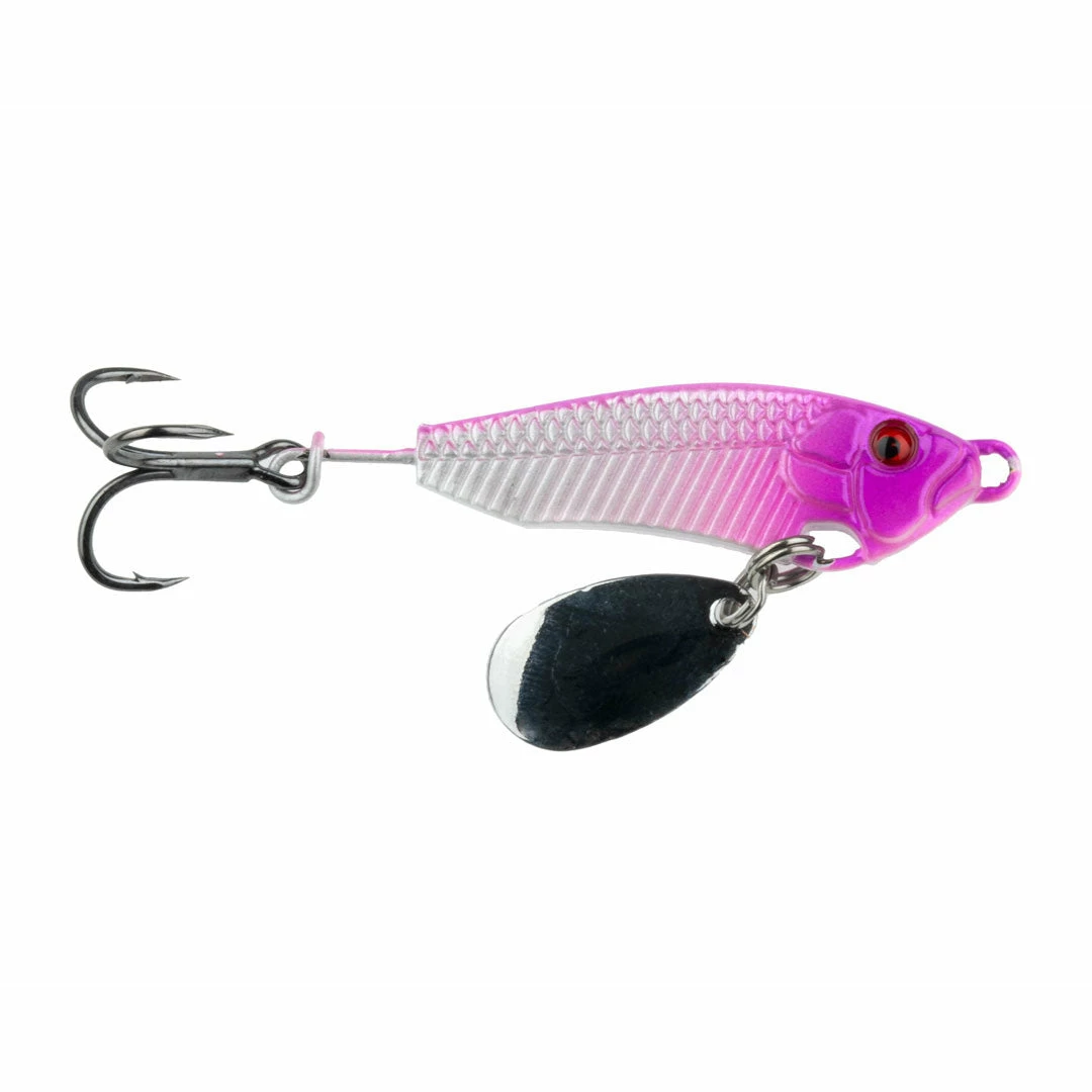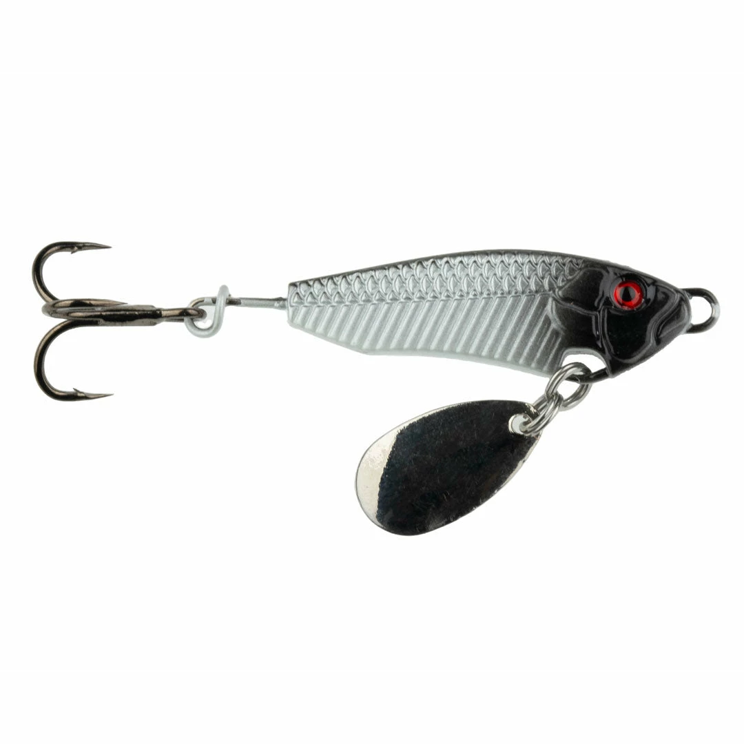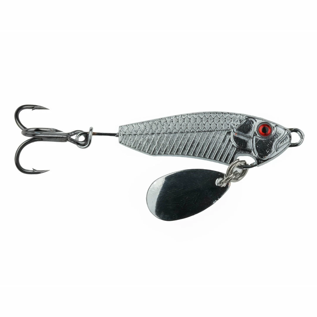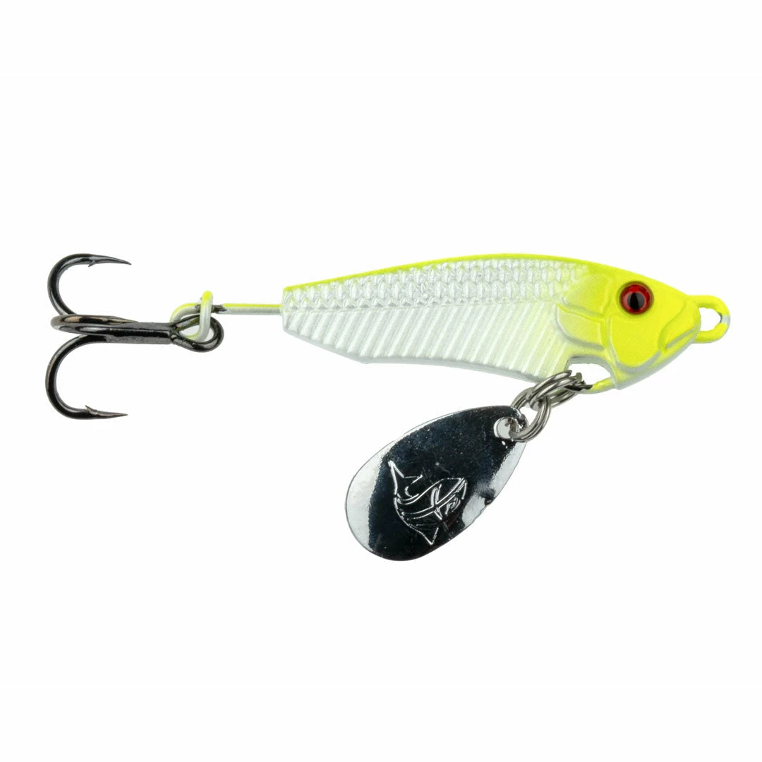 The premium zinc, UV coated body carries an Indiana blade mounted on the belly which swings loosely on the rise and fall to maximize both flash and vibration while creating the erratic action of a baitfish in trouble.