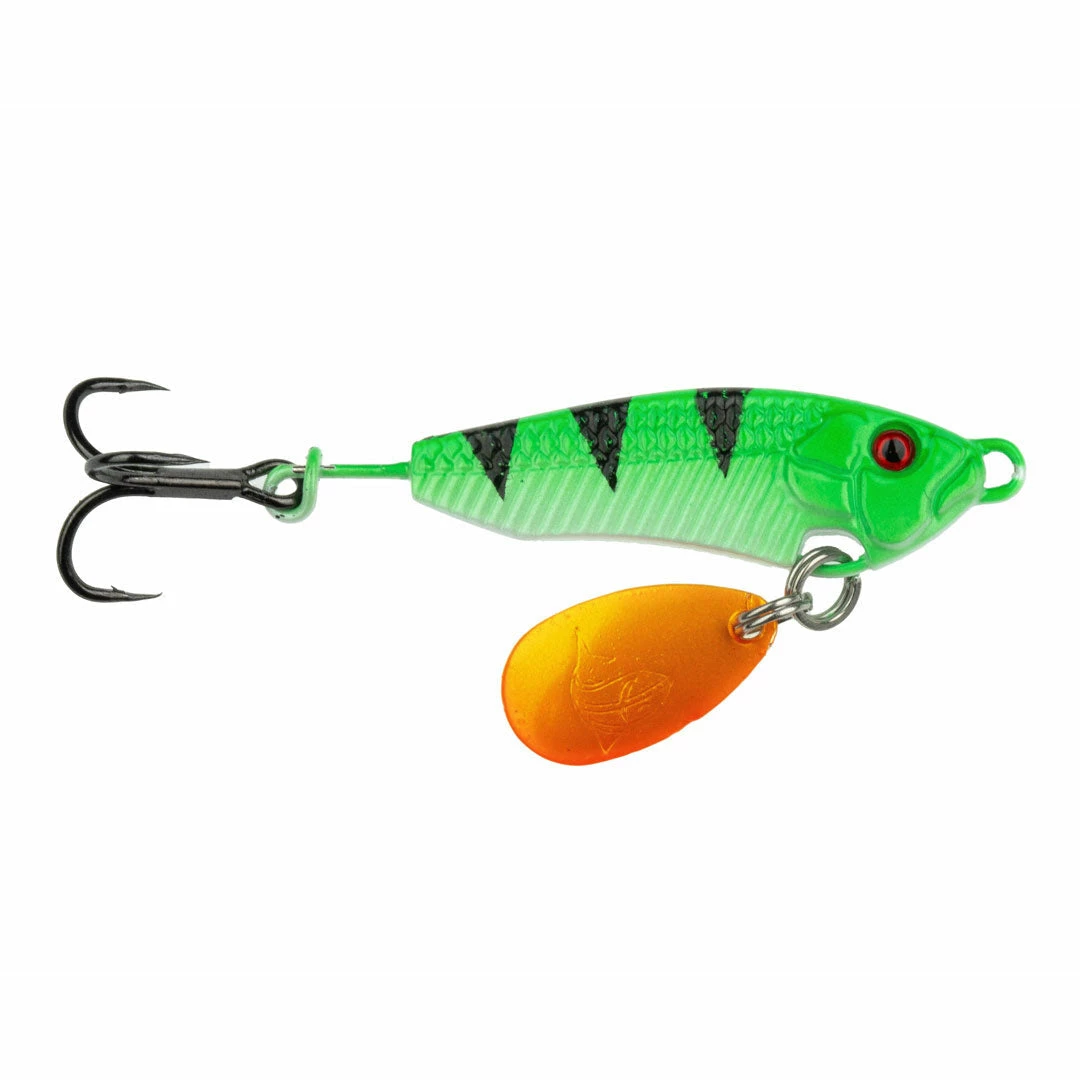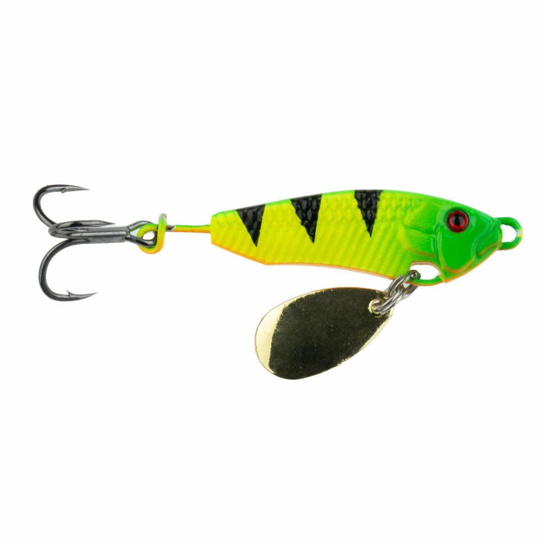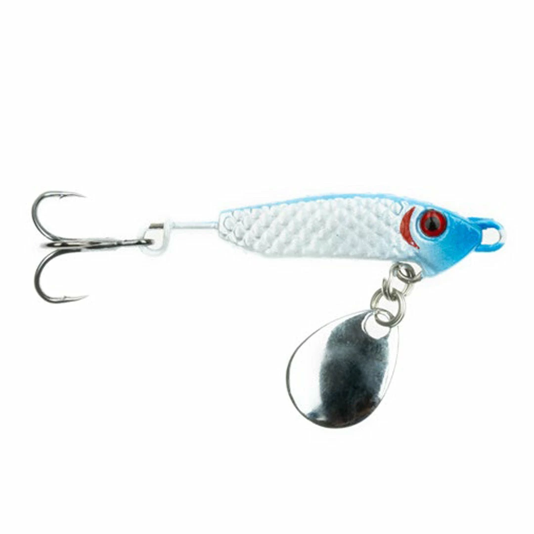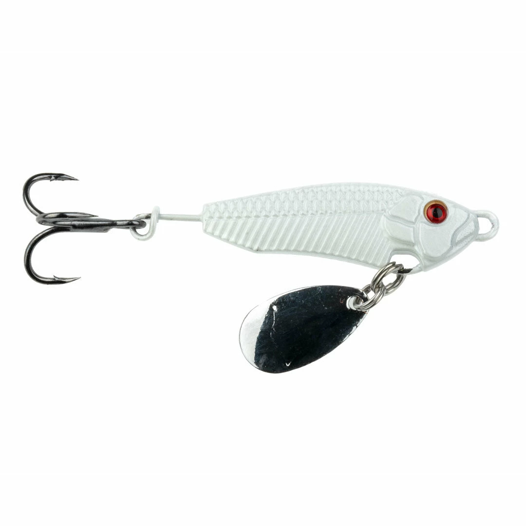 The through-wire construction transmits vibration throughout the bait and ties in an elongated bait keeper wire for adding a minnow head. Super-sharp black nickel treble hook on the tail guarantees fish stay hooked up until they’re through the hole or in the boat.