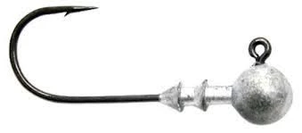 A standard all around jig head design, it features a long shank 90 degree jig hook and a round head with two keeper rings to prevent the bait from sliding off, but won’t tear up thinner, softer baits. The Nickel silver Black.
