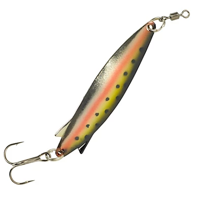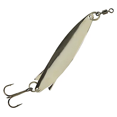 The Johnson SlimFish offers a unique body form and erratic swim action due to its built-in fins. The SlimFish comes with a black nickel swivel and hook designed for various predatory fish species.