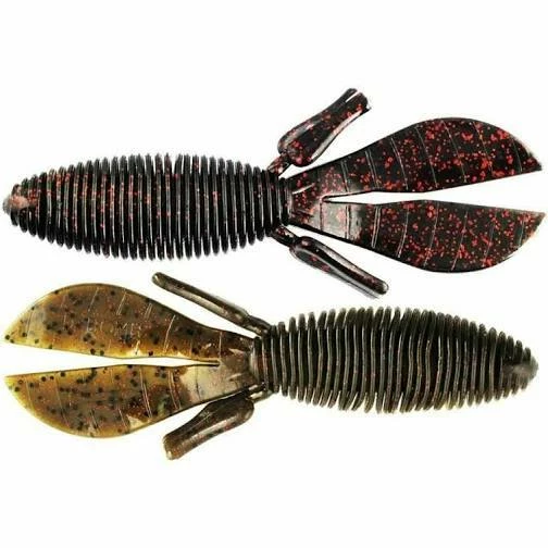 Pitching and flipping has a new go-to bait. D Bomb is a bulky 4 ” creature bait with a unique ribbed body that displaces lots of water resulting in a straight fall. The tails sail when left connected or flap wildly when separated. The body is thinner where the hook comes out for easy hook sets but has a thicker head so the bait stays on the hook. 6 per pack