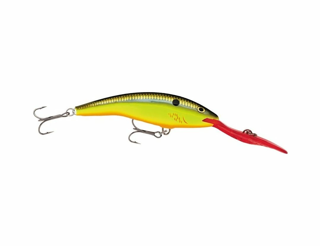 The Deep Tail Dancer features an enlarged, extreme diving lip that plummets the lure as deep as 12 meters unassisted. The banana-style body swims with a wide tail, dancing action that can only be created with balsa. Cast it or troll it deep for a large number of species worldwide.